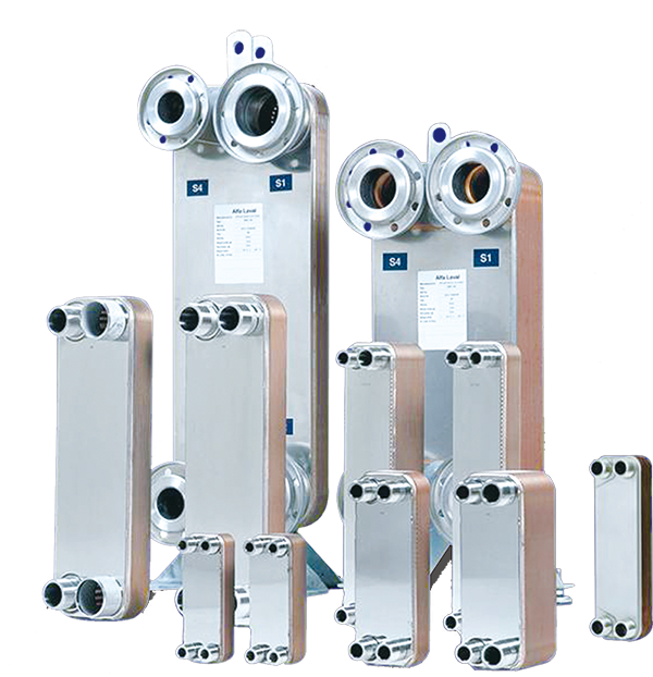 釬焊換熱器是以純銅為釬料,在真空釬焊爐中,將相鄰不銹鋼波紋板片焊接而成的板式換熱器。板片間形成通道,邊角上的角孔分布使兩種介質(zhì)在通道中交替流動,數(shù)目眾多的接觸點提供了很好的機械強度,接觸點和邊緣由銅釬焊密封,具有結(jié)構(gòu)緊湊,體積小,重量輕,傳熱效率高,制冷劑填充總量小,使用范圍廣,性價比高等優(yōu)點。